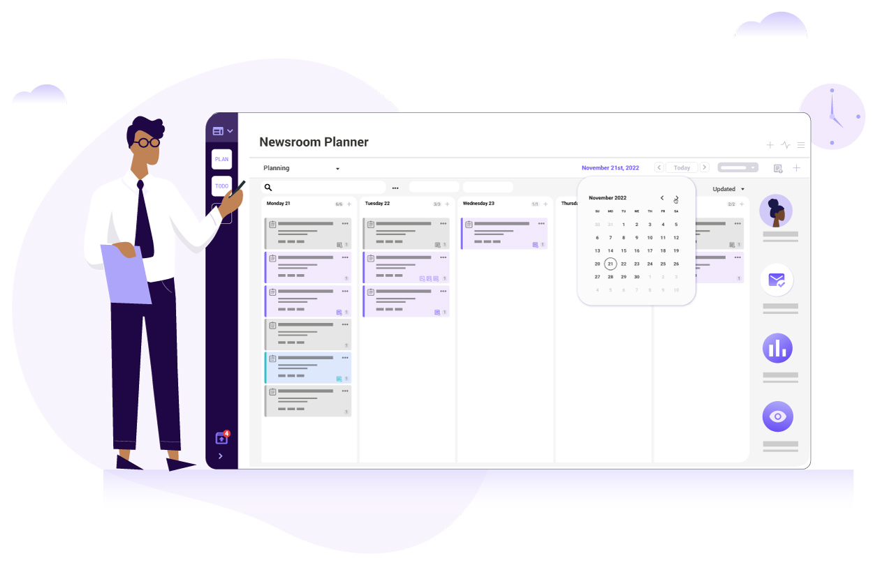 Plan your coverage across all platforms using Naviga’s Newsroom Planner, the planning tool built for how editorial teams work. Track events, plans, and assignments from conception to publication.